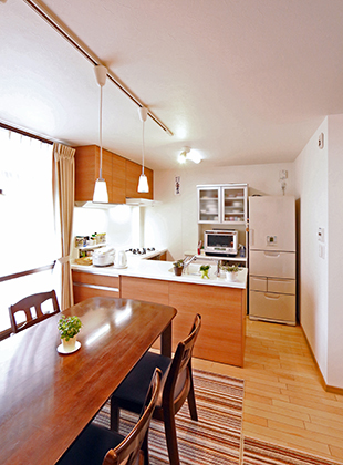 奥様憧れの対面キッチンになり、ご家族とのコミュニケーションが楽しめる空間に。