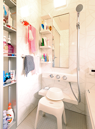 女性3人それぞれのシャンプーやクレンジングがあり、収納にお困りでした。