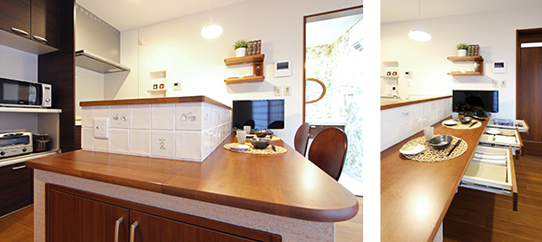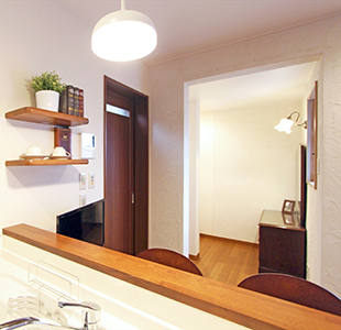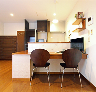 【カウンター】引出し付のカウンターを造作。簡単な食事を手軽に済ませられるよう、現実性をカタチにしました。