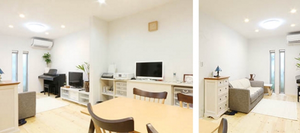 床は無垢材なので気持ちがいいし、珪藻土を塗って頂き快適な空間になりました。じっくりと打ち合わせを行ったおかげで、どの部屋も満足で大好きで、毎日家に帰ってくるのが楽しみです。ピクチャーレールをつけて頂いたので、お部屋にぴったりな絵が飾れたらお友達も呼んでパーティーをしようと思っています。