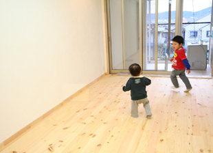 床にはパイン・天井壁にはしっくいを使用するなど、アレルギーをお持ちのお子様の為に体にいいものを使いました。