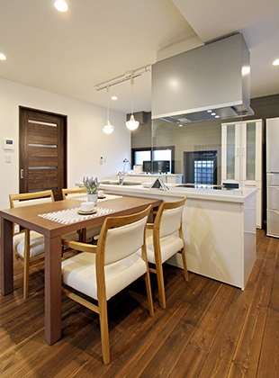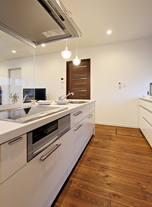 【キッチン】回遊できるアイランドキッチンをご提案し、家事動線がスムーズに。