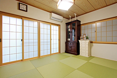 【1階和室】琉球畳に入れ替え、和室を一新。障子調の内窓を新設し、気密性を高めました。