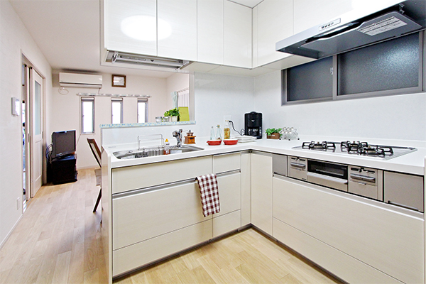 ■施工内容 /キッチン:LIXIL シエラ L型1800×1800/UB:TOTO サザナPタイプ 1616サイズ/洗面化粧台:TOTO サクアW750/トイレ:TOTO QR/床:無垢フローリング、クッションフロア(水廻り)、集成材フローリング(洋室・2F廊下)、琉球畳(1F和室)、畳表替え(2F和室)、既存(玄関・納戸・ロフト)/壁:珪藻土(LDK・1F廊下)、クロス、聚楽(2F和室)/天井:クロス、既存(和室)/収納、カウンター造作/建具新調/サッシ新設/インナーサッシ取付け/白蟻工事/ベランダ防水/屋根上張り/外壁塗装/外構工事/門扉新設/